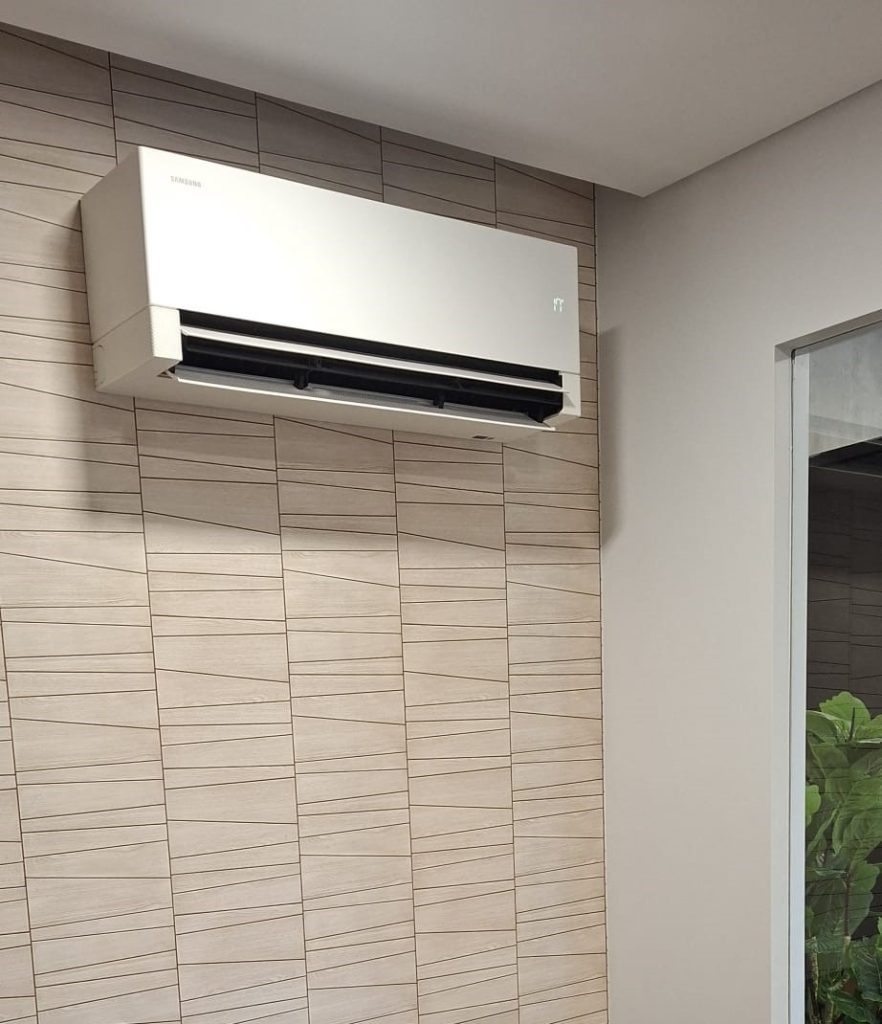 1 Conjunto Monosplit Mural Samsung Première WindFree com efeito cuanda.