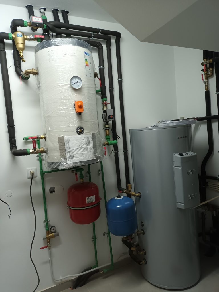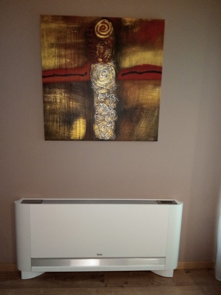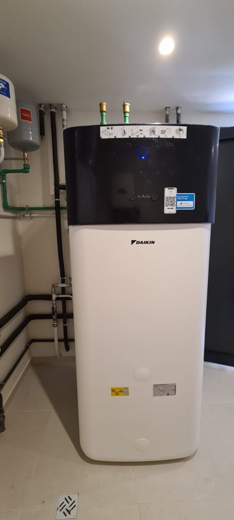 Nesta obra instalamos uma Bomba Calor com capacidade de fazer águas quentes sanitárias e Climatizar o ambiente com Piso Radiante / ventiloconvertores , desta forma o cliente consegue ter a casa quente no inverno e fresca no verão.